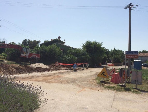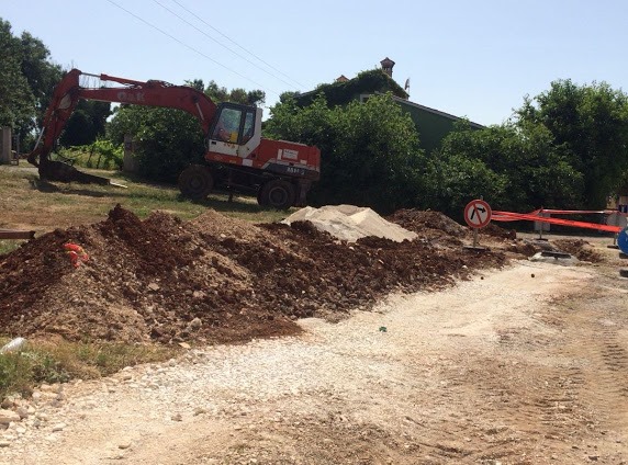 Građevinski radovi spuštanja dalekovoda u trup lokalne ceste u Šišanu
