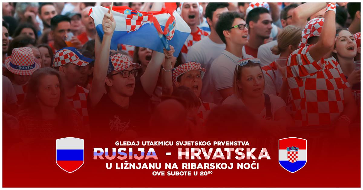 U 20.00 sati na velikom platnu moći će se pratiti utakmica Rusija-Hrvatska.
